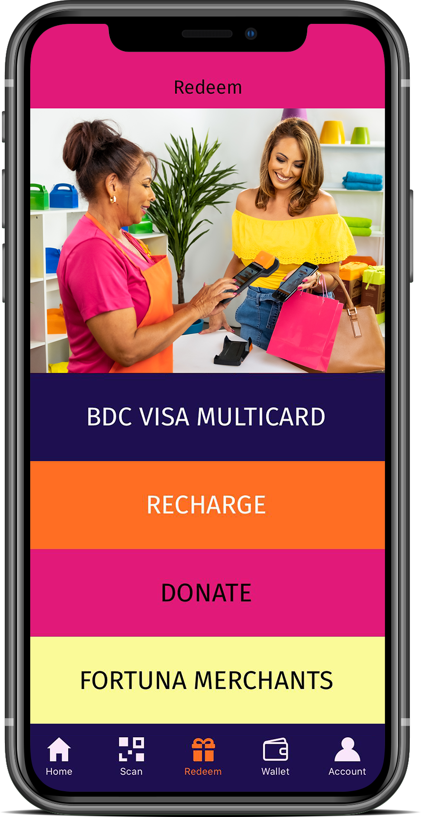 The Fortuna Loyalty Program is an innovative program that uses mobile applications to allow consumers to save and redeem points they receive as incentive from participating merchants.